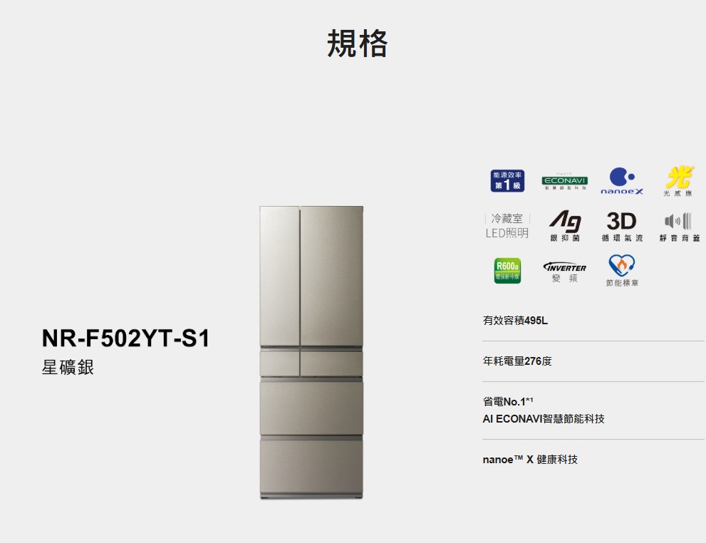商品編號:NR-F502YT