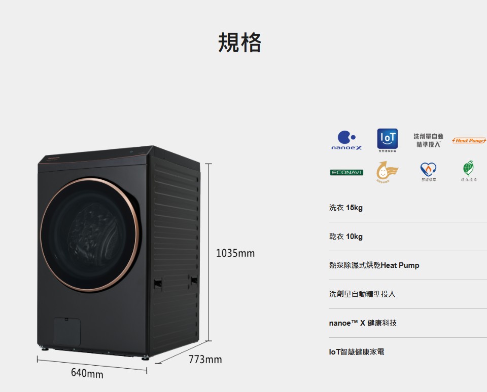 上揚家電-國際熱泵除濕式滾筒洗衣機15公斤(NA-V150RPH-W/NA-V150RPH-K)