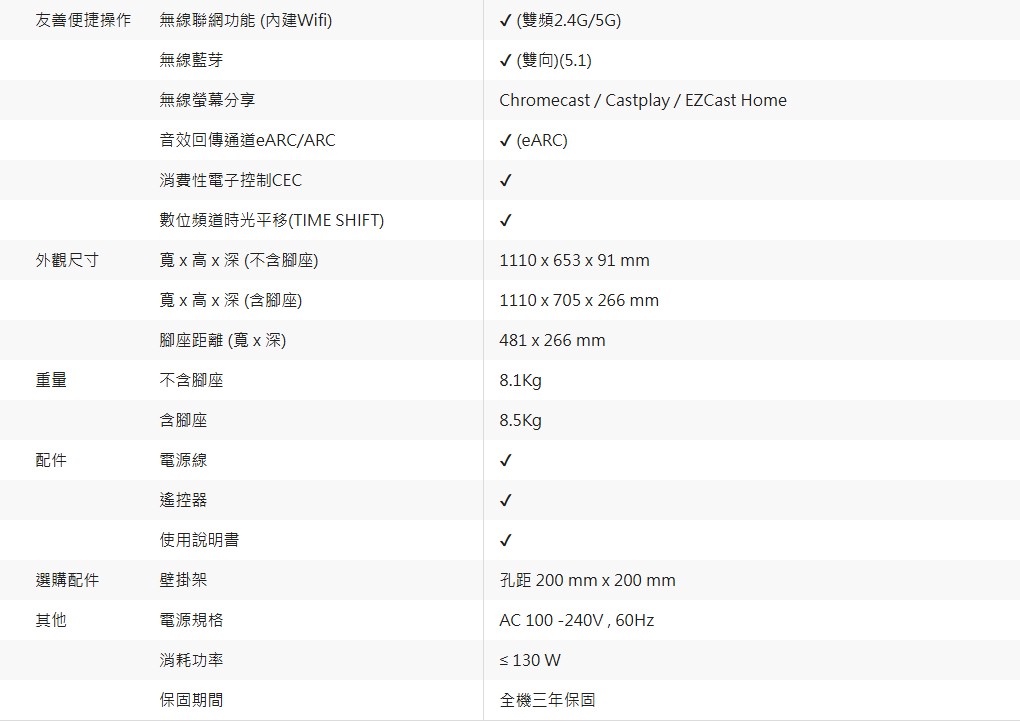 2.如需額外配線或按裝壁掛架、懸吊架及特殊牆面施工費用另計。