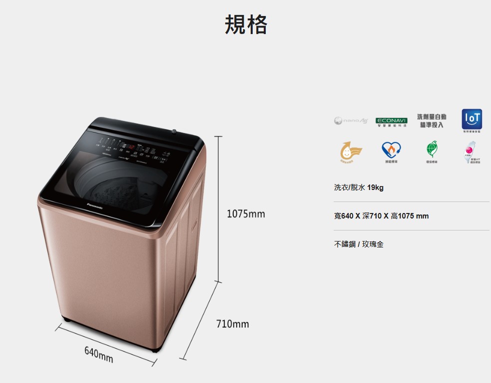 上揚家電-國際智能聯網變頻洗衣機17公斤(NA-V190NM-PN)