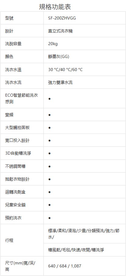 上揚家電-日立HITACHI大容量變頻洗衣機20公斤(SF200ZHV)