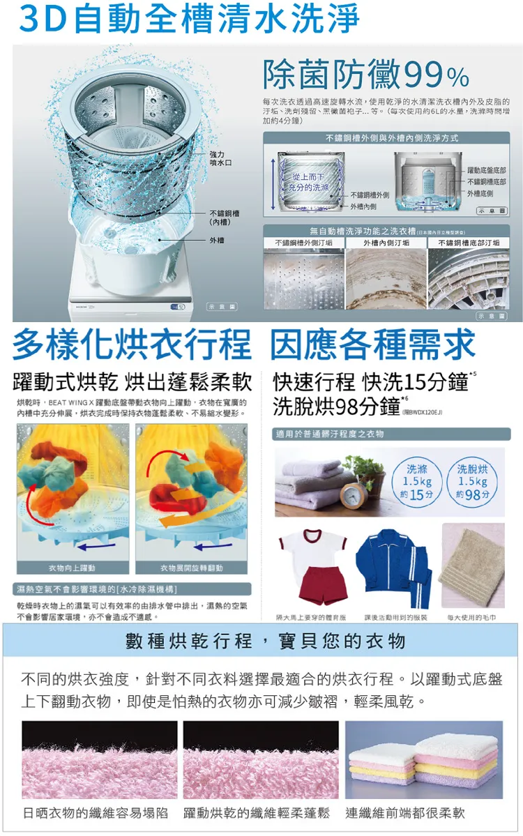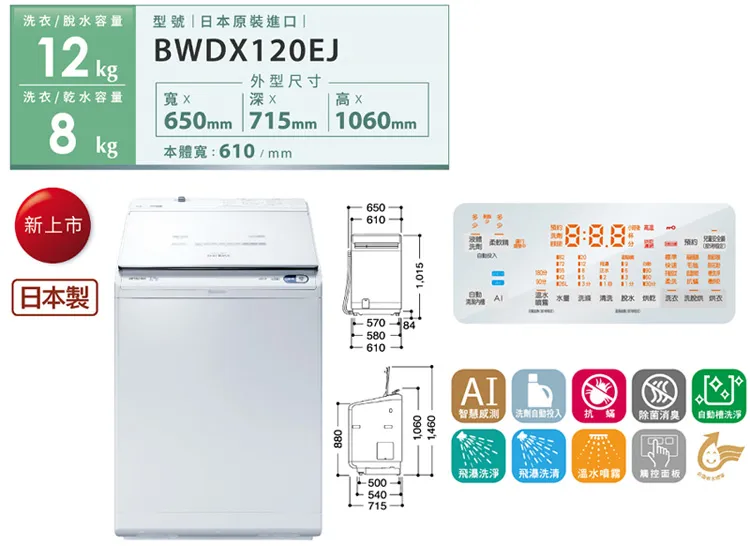 上揚家電-日立日本原裝躍動式洗脫烘12公斤(BWDX120EJW)