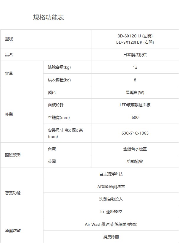上揚家電-日立日本原裝AI智能感測滾筒洗衣機12公斤(BDSX120HJ/BDSX120HJR)