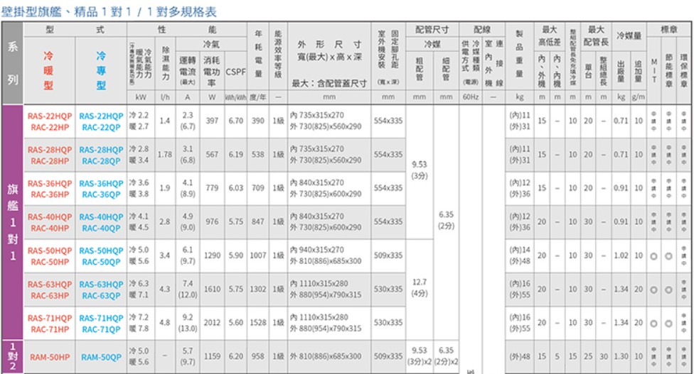 商品編號:RAS-22HQP/RAC-22HP