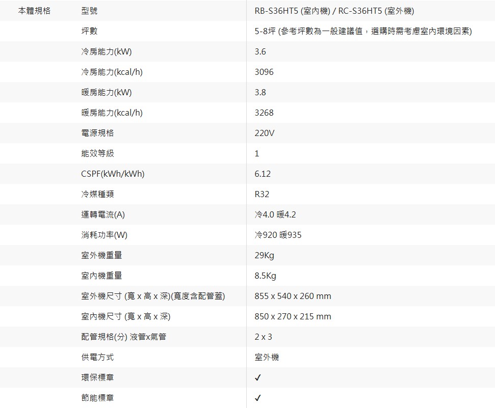 商品編號:RB-S36HT5/RC-S36HT5