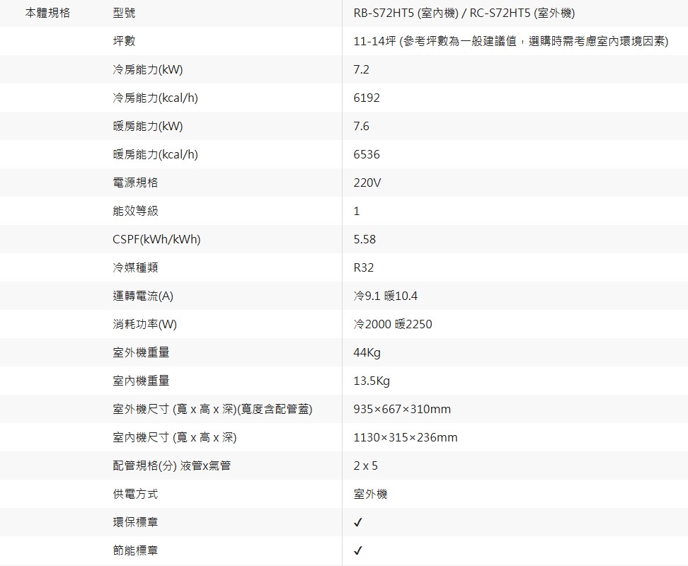 商品編號:RB-S72HT5/RC-S72HT5
