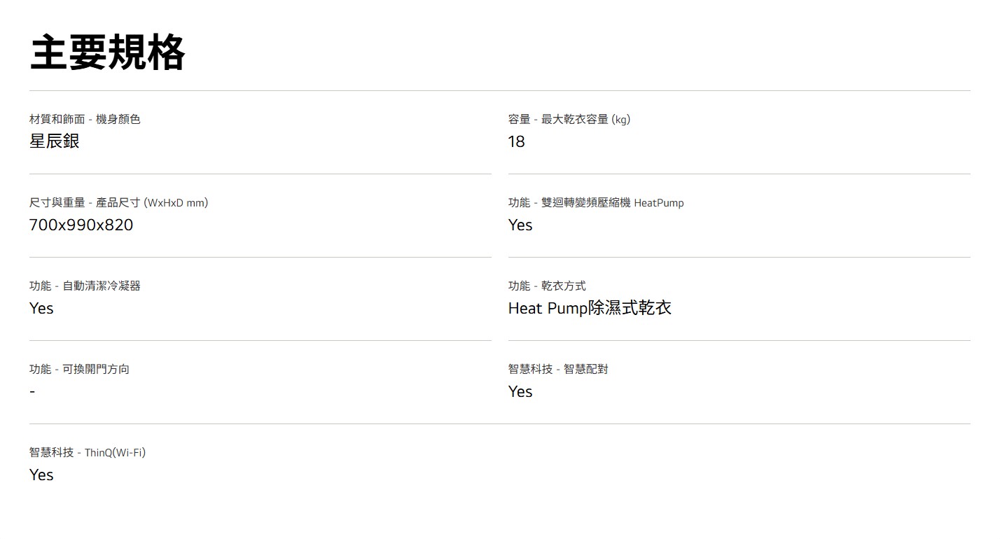 上揚家電-LG AI免曬衣乾衣機/雙變頻熱泵除濕18公斤(WR-18DS)