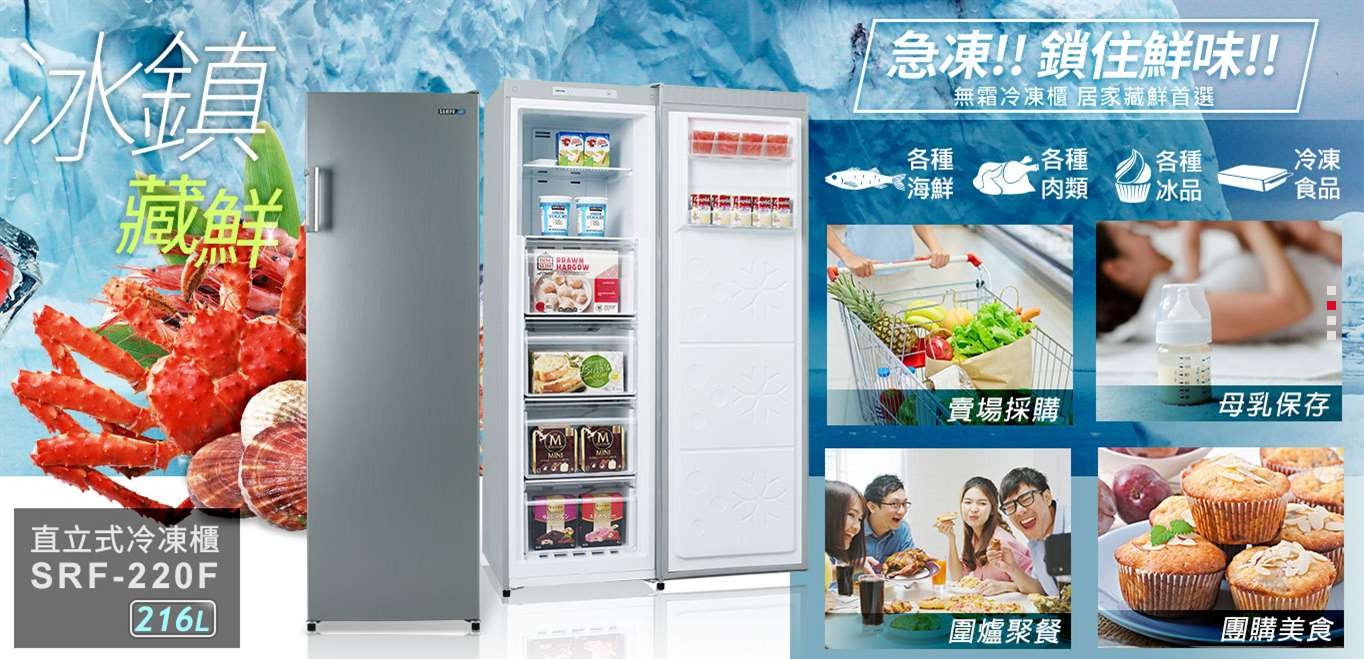 上揚家電-聲寶定頻直立式冷凍櫃216公升(SRF-220F)