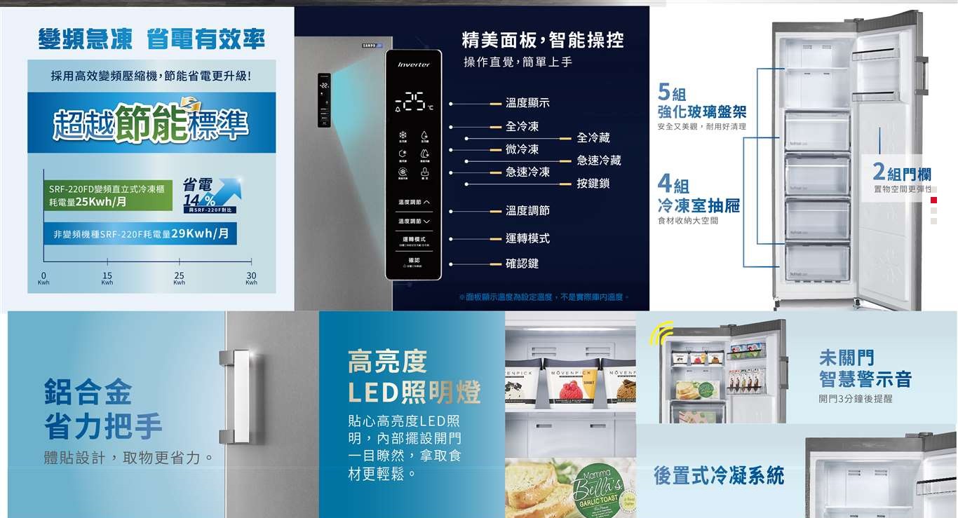 上揚家電-聲寶變頻直立式冷凍櫃216公升(SRF-220FD)