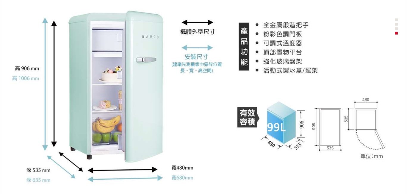 上揚家電-聲寶歐風美型兩門冰箱99公升(SR-C10(E)/SR-C10(P))