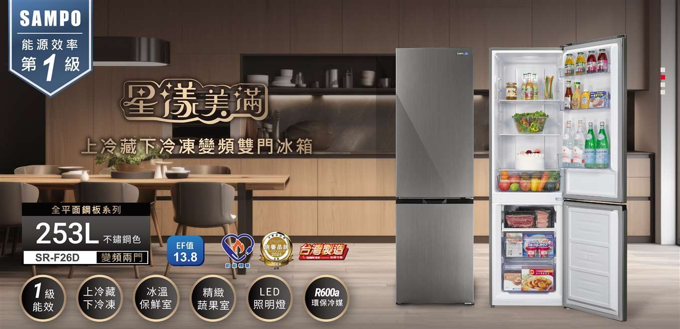 上揚家電-聲寶上冷藏下冷凍變頻二門冰箱253公升(SR-F26D)